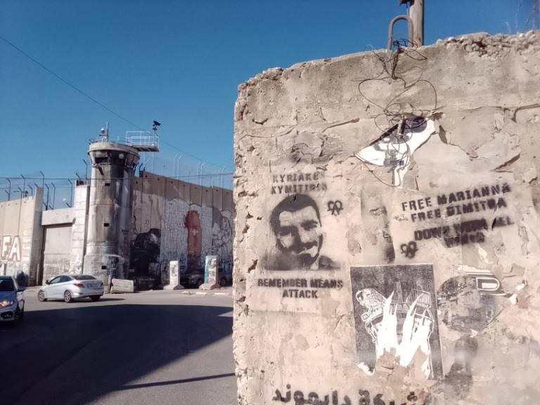 [Λεζάντα φωτογραφίας]: Πριν από ένα χρόνο, στις 31 Οκτωβρίου, ο αναρχικός αντάρτης Κυριάκος Ξυμιτήρης σκοτώθηκε από έκρηξη σε διαμέρισμα στην Αθήνα. Για το θέμα αυτό, η εικόνα του εμφανίστηκε στον τοίχο του ισραηλινού διαχωριστικού φράγματος στην Παλαιστίνη, μαζί με τα ονόματα των συλληφθέντων συντρόφων του και τις λέξεις ότι όλα τα τείχη θα πέσουν. Μια εβδομάδα πριν από αυτή την επέτειο, στις 24 Οκτωβρίου, ένας άγνωστος νεαρός από το Χάρκοβο ανατινάχθηκε μαζί με μια συνοριακή περίπολο, ενώ προσπαθούσε να φτάσει στα σύνορα με τη Λευκορωσία. Δεδομένου ότι δεν άφησε σημείωμα αυτοκτονίας και δεν είναι γνωστό αν κάποιος τον βοήθησε, μπορεί κανείς μόνο να μαντέψει για τα κίνητρά του.